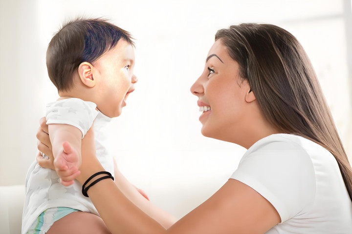 不要等到孩子会说话时,再去跟他说话,要在他还不会说话的阶段,就跟他多交流。
